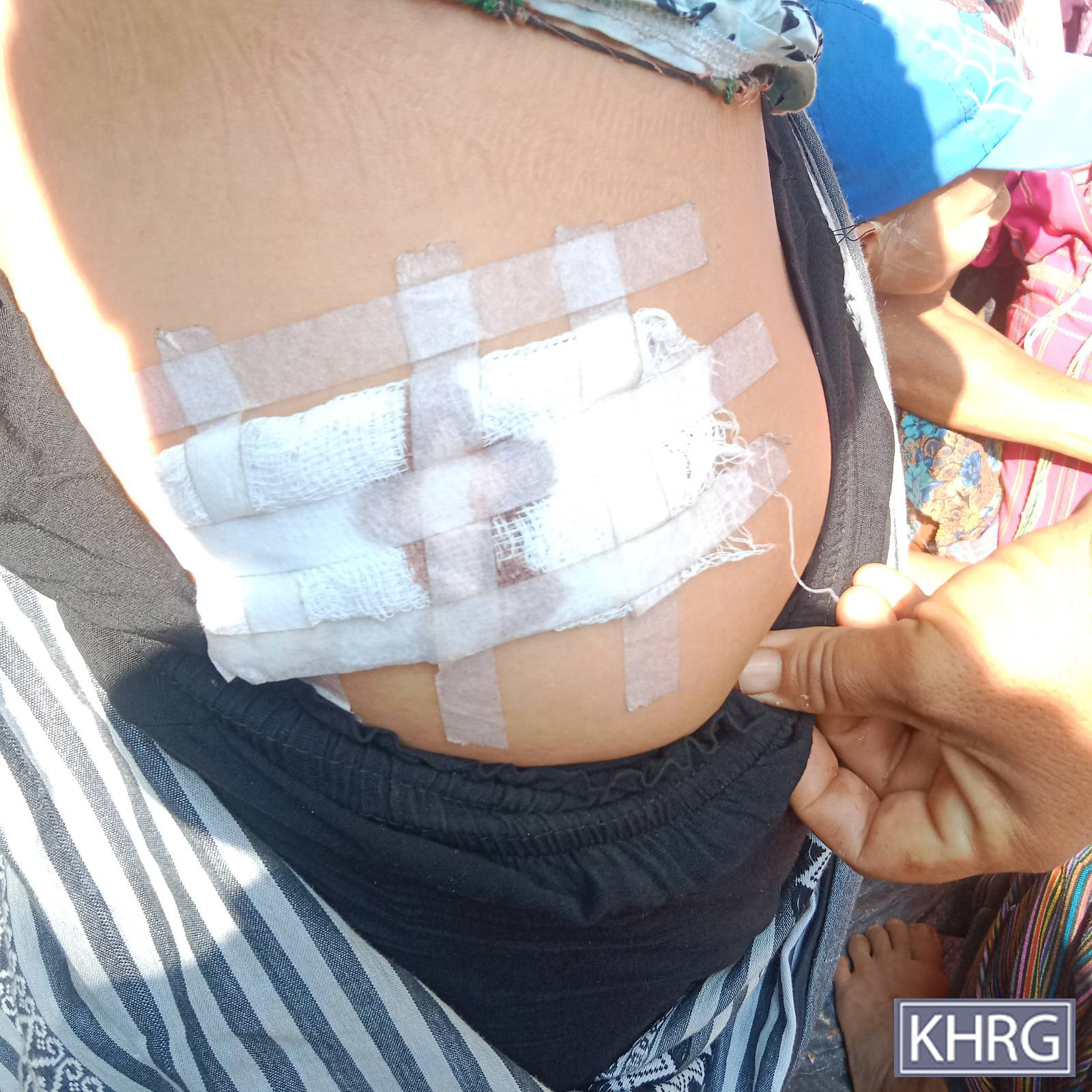 These photos were taken in March 2024, at a place located in Nn--- village area, Ma Htaw village tract, Dwe Lo Township, Mu Traw District. These two photos show Sai T---, a villager who was injured on the right side of his back and on his buttocks due to the air strike conducted by the SAC on March 27th 2024 in Aa--- village, Meh Klaw village tract, Bu Tho Township. [Photo: KHRG]
