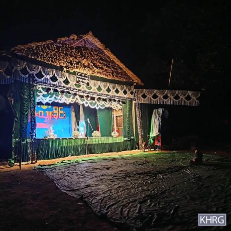 These photos were taken in December 2025, in Af--- village, Htee Hpoh Tray village tract, Ta Kreh Township, Hpa-an District. These photos show the stage that was set up for traditional entertainment performances during the Our Day events that were held in Af--- village. [Photos: KHRG]