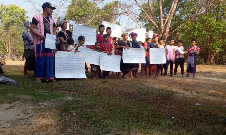 Villagers from Kheh Der village tract demonstrating against the Tatmadaw road construction project on March 21st, 2019. [Photos: KHRG]