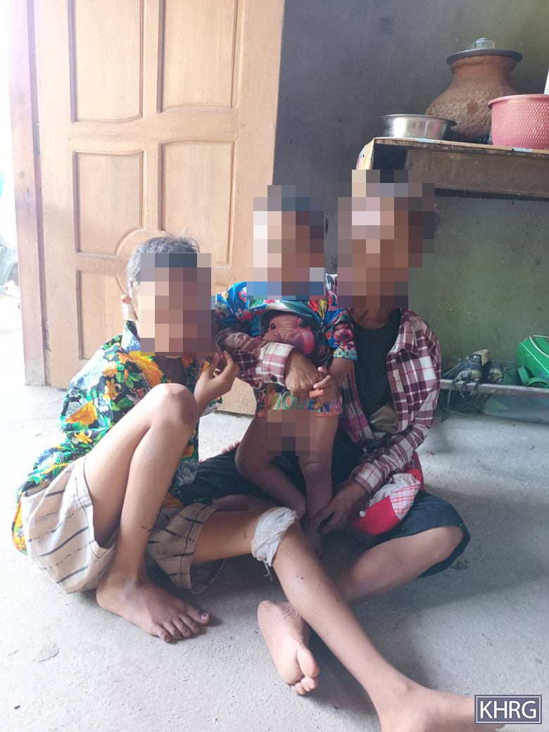 Those four children live with their grandmother because their parents work in Thailand. The victims’ family member [grandmother], named Daw E---, explained to KHRG: “The shelling destroyed the entire hut. Fortunately, the children were lucky and sustained only minor injuries, and none of them were in life-threatening danger.”