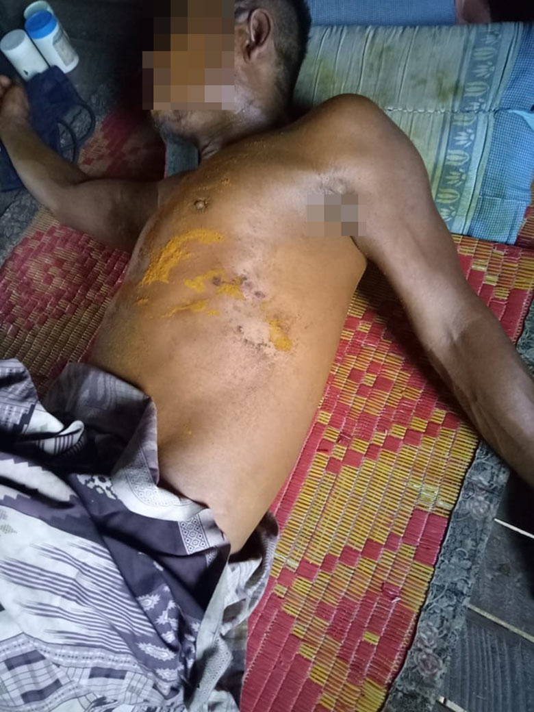 နောက်နေ့မနက် ၂၀၁၉ ခုနှစ်၊ ဧပြီလ ၃၀ ရက်နေ့တွင် ရွာသားများမှ သူ့ကို ကျုံဒိုးဆေးရုံသို့ဆေးကုသရန် ခေါ် ဆောင်သွားခဲ့ သည်။ ထိုသူ၏ မိသားစုပြောကြားချက်အရ၊ သူနာပြုတစ်ဦးမှ အတည်ပြုခဲ့သည်မှာ စောအ---သည် အတွင်းဒဏ်ရာ အထူးသဖြင့် အဆုတ်တွင်ရရှိခဲ့သည်။ သူသည် ဒဏ်ရာပျောက်သည့်အထိ ဆေးသောက်ရမည် ဖြစ်သည်။ သူသည် လေးလံသည့်အလုပ်များကို ခန္ဓာကိုယ်ပိုင်း ဒဏ်ရာမပျောက်မချင်း လုပ်ဆောင်နိုင်မည်မဟုတ် ပါ။