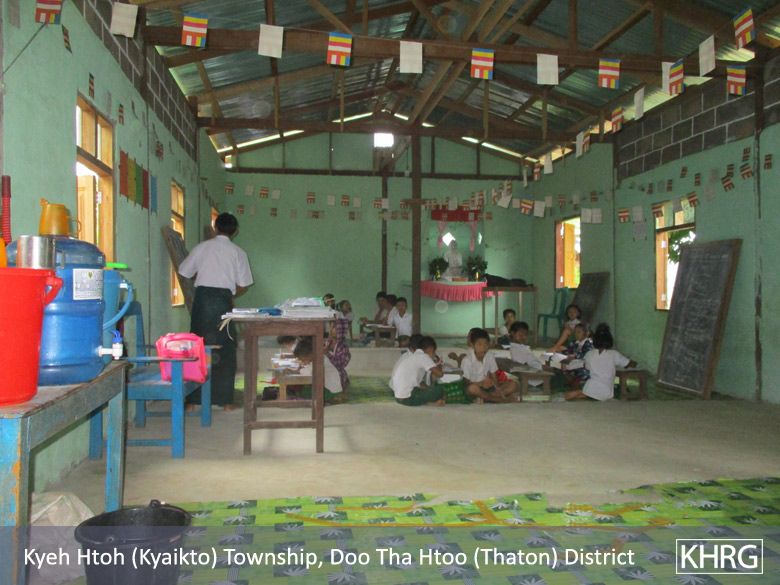 KHRG ၏မှတ်တမ်းပြုစုမှု၌ အချို့သောဖွံ့ဖြိုးတိုးတက်မှုများသည် တိုးတက်မှုရှိနေသော်ငြားလည်း မြန်မာပြည်အရှေ့ တောင်ပိုင်းရှိအချို့နေရာတွင် ပညာရေးသင်ကြားခွင့်ရရှိရန်မှာ ပြဿနာအဖြစ်ရှိနေဆဲပင်ဖြစ်နေကြောင်း ဖော်ပြထား ပါသည်။ ပညာရေးနှင့်ဆိုင်ရာအဆောက်အအုံများကို တိုးချဲ့ဆောက်လုပ်ရန်အစီအစဉ်ရှိနေသော်လည်း ထိုကဲ့သို့တိုး ချဲ့ဆောက်လုပ်ရာတွင်အခက်အခဲများဖြင့်ရင်ဆိုင်ကြရပါသည်။ ဒေသတစ်လျှောက်ငွေကြေးထောက်ပံ့မှုပြဿနာနှင့် ပညာရေးရရှိရန်အခွင့်အလမ်းသည် သားတူညီမျှမှုမရှိခြင်းတို့သည်ဆက်လက်ဖြစ်နေပါသည်။