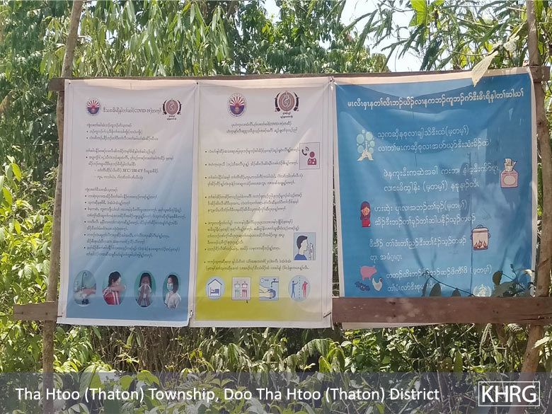 ဒေသတွင်းအစီရင်ခံစာ၏ ဤအပိုင်းတွင်ပါဝင်သည့်အချက်အလက်များတွင် ကိုဗစ်-၁၉ ရောဂါအတွက် သီးခြားအစီရင်ခံစာတစ်စောင်ထုတ်ဝေမည့် သတင်းအချက်အလက်ကို အကျဉ်းချုပ်ဖော်ပြထားပါသည်။ ရောဂါကပ်ဆိုးကြီး၏သက်ရောက်မှုကြောင့် အချိန်နှင့်တစ်ပြေးညီ လေ့လာအကဲဖြတ်မှုပြုလုပ်ရန်မှာ မဖြစ်နိုင်သေးသဖြင့် KHRG မှ ကိုဗစ်-၁၉ အခြေအနေ၏ နောက် ဆုံးရအချက်အလက်များကို ဆက်လက်ထုတ်ဝေသွားမည်ဖြစ်ပါသည်။